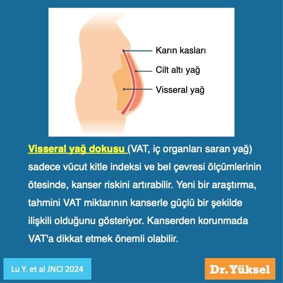 JNCI’da yakın zamanda yayımlanan makaleye göre: visseral yağ dokusunun (VAT) kanser riskine olan bağımsız etkisi incelenmiştir. Geleneksel obezite ölçümlerinin ötesinde, VAT’ın kanserle ilişkisi hakkında yeterli veri bulunmadığından, araştırmacılar, UK Biobank’taki (UKB) katılımcıların demografik ve antropometrik verilerini kullanarak VAT hacmini tahmin etmek için bir denklemi geliştirmişlerdir. Bu denklem, farklı cinsiyet, yaş ve ırk gruplarında ABD Ulusal Sağlık ve Beslenme İnceleme Anketi (NHANES) katılımcıları üzerinde doğrulanmıştır.